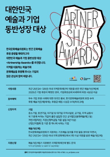 ![]() 한국문화예술위원회 <대한민국 예술과 기업 동반성장 대상> 포스터 |
