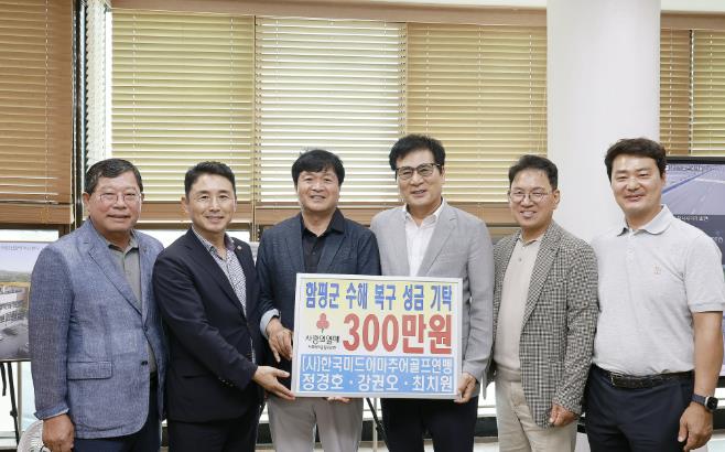 함평군은 4일 “정경호 (사)한국미드아마추어골프연맹 부회장을 비롯해 강권오 이사, 최치원 프로 등 관계자 3명이 지난달 28일 함평군을 방문해 수해 피해 주민들을 위한 성금 300만 원을 전달했다”고 밝혔다.