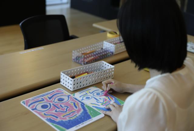 유치원생부터 중학생까지 지역 아동·청소년의 정서 발달과 안정을 위한 이번 프로그램은, 인물 감정을 표정과 색으로 표현하는 미술활동.