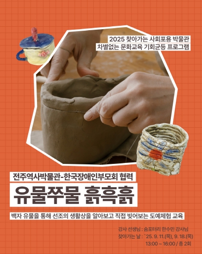 시는 이번 교육을 통해 전주에서 발견된 다양한 백자 유물을 관찰하고 흙을 조형하는 과정에서 근육의 감각 발달과 심리적 안정감 및 긴장 완화에 도움을 주는 것은 물론, 자신의 작품을 완성함으로써 성취감과 자기 고양감을 느낄 수 있을 것으로 기대하고 있다.