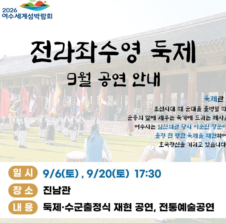 ![]() ‘전라좌수영 둑제’ 9월 공연 안내 |