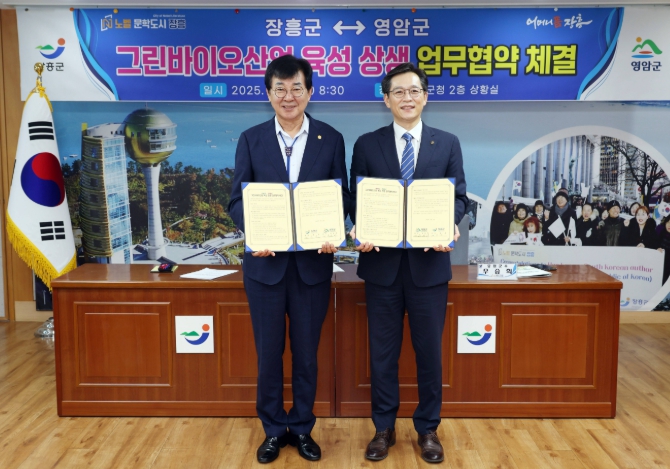 장흥군과 영암군은 보유한 천연물 자원과 바이오 인프라를 바탕으로 그린바이오 산업의 미래 성장 동력을 확보하고 지역 간 상생 발전을 도모하기로 했다.