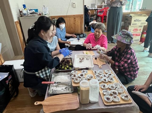 ![]() 참쌀떡 만들기 체험을 하고 있는 곡성군 석곡면 당지마을 주민들 |
