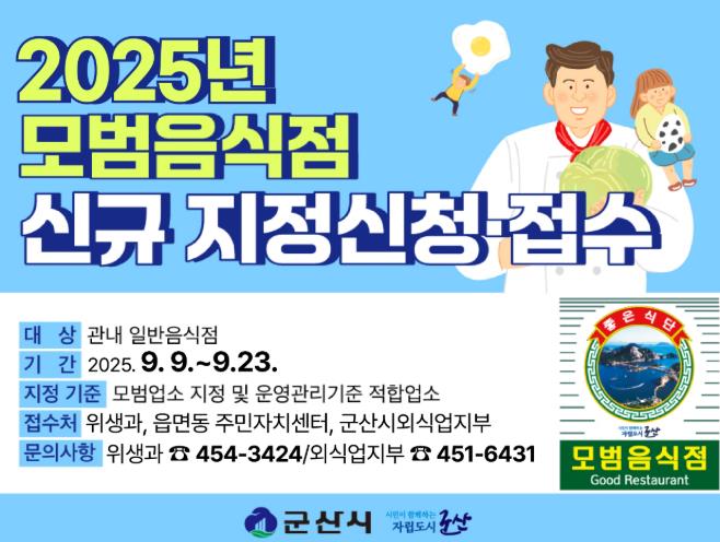 ![]() 군산시, 2025년 신규 모범음식점 모집 |