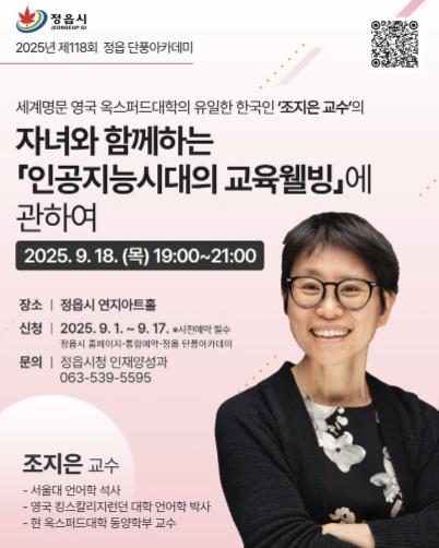 ![]() 정읍시, 제118회 단풍아카데미…옥스퍼드대 조지은 교수 초청 강연 |