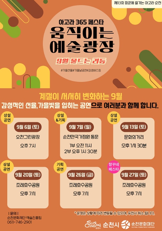 ![]() 순천’ 9월 상설공연 움직이는 예술광장 운영 |