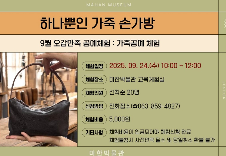 박물관 관계자는 "가을을 맞아 나만의 손가방을 만들며 일상 속 즐거움을 누리는 시간이 되기를 바란다"며 "앞으로도 박물관이 다채로운 체험과 문화를 만나는 열린 공간이 될 수 있도록 노력하겠다"고 말했다.