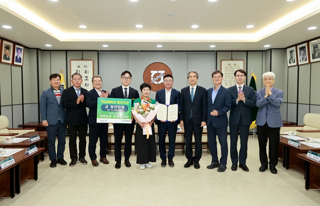 이근배 총장은 “양일영 대표님께서 보여주신 꾸준한 연구와 도전, 그리고 모교 사랑에 깊이 감사드린다”며 “기탁해 주신 기금은 전남대학교 동물병원의 발전을 위해 소중히 사용할 것”이라고 화답했다.
