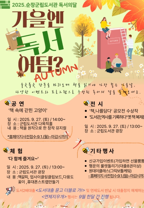 ![]() 순창군립도서관,‘가을엔 독서 어텀?’문화행사 개최 |