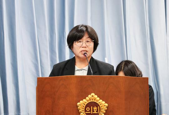 ![]() 전라남도의회 제393회 임시회 제1차 기획행정위원회 회의(9일)에서 오미화 의원이 조례 제안을 설명하고 있다. |