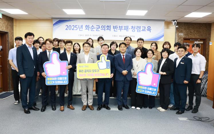 화순군의회는 앞으로도 정기적인 청렴교육과 실천 중심의 청렴정책을 지속적으로 추진해 나갈 계획이다.