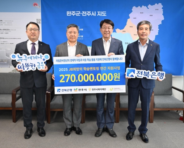 한편 전북은행은 JB금융그룹의 핵심 사회공헌사업으로 지난 2023년부터 ‘자립준비청년 지원사업’을 꾸준히 이어오고 있으며, 현재까지 총 5억1000만 원을 투입해 학습멘토링과 의료비, 금융교육, 주거비, 정서 지원 등 240명의 청년을 지원하며 지역사회 청년 자립의 든든한 후원자가 돼왔다.