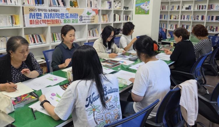 ![]() 지역 주민들이 서면작은도서관에서 열린 '찾아가는 농촌배움터' 프로그램의 색연필화 수업에 참여하고 있다. |