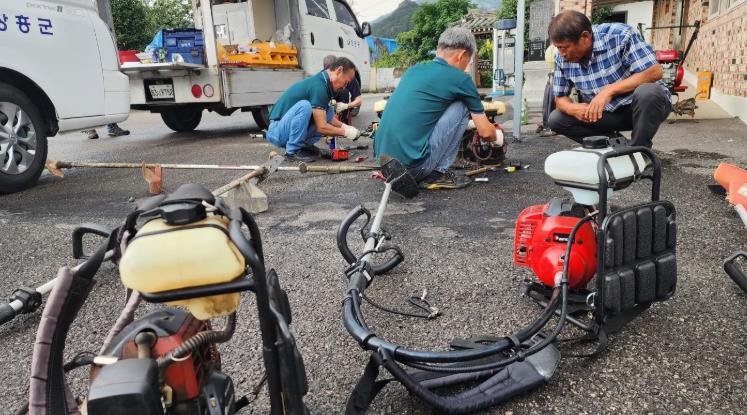 이번 순회수리에서는 농업인들이 많이 사용하는 소형농업기계 위주로 예초기와 동력살분무기 등의 농업기계 점검 및 수리를 진행했다.