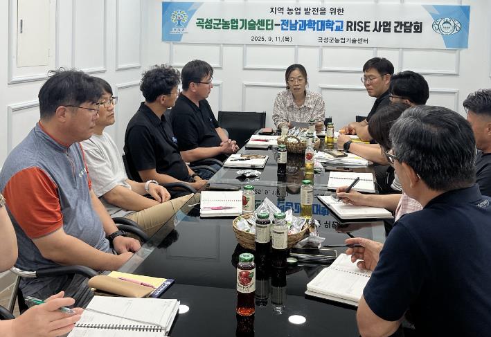 ![]() 곡성군 농업기술센터와 전남과학대학교 RISE사업 관계자들이 지역 농업 발전을 위한 간담회를 개최하고 있는 모습 |