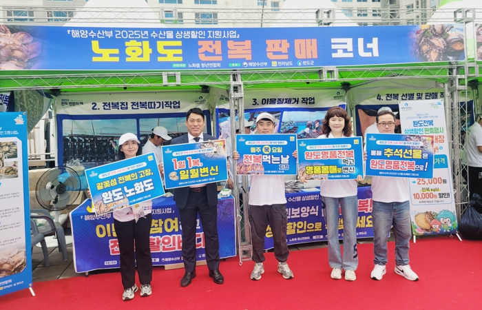 이날 행사는 수산물 상생할인 지원사업의 일환으로, 해양수산부, 전남도, 완도군이 추석 명절 선물용 전복 대량 출하 등으로 어려운 전복 양식어가에 힘을 보태고자 추진됐다.