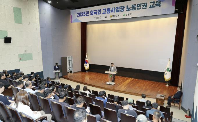 함평군은 지난 11일 함평엑스포공원 주제영상관에서 외국인 노동자를 고용하고 있는 사업장 고용주를 대상으로 노동인권 교육이 진행됐다”고 15일 밝혔다.