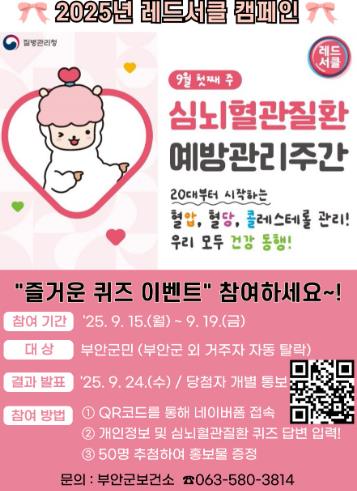 ![]() 부안군보건소, 레드서클 캠페인 퀴즈 이벤트 운영 |
