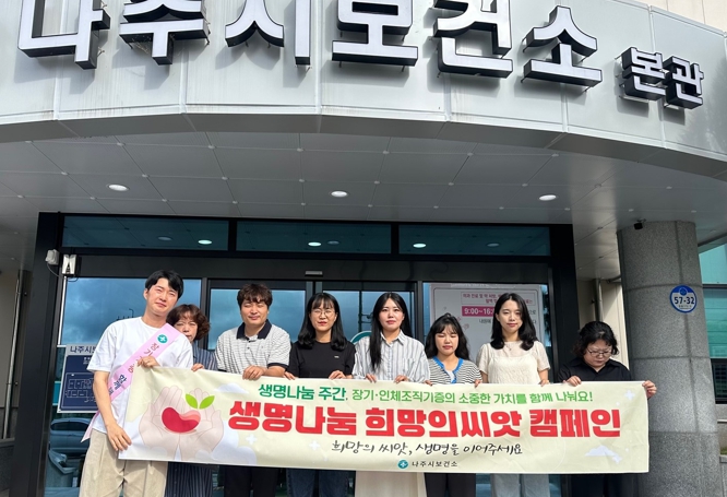 ![]() 나주시는 ‘생명나눔 주간’을 맞아 지난 8일부터 14일까지 생명나눔 문화를 확산시키고 장기기증에 대한 인식 개선을 위한 홍보 캠페인을 했다. |