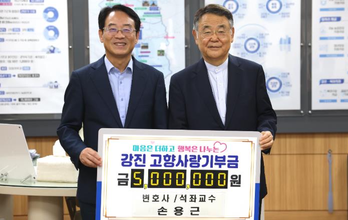 강진원 강진군수는 “우리나라 법률 문화 발전에 이바지한 손용근 변호사의 강진 방문과 고향사랑기부를 깊이 감사드린다”며 “복지사업으로 강진 주민을 웃게 만드는 고향사랑기부제에 동참하시고, 세액공제와 특산물 답례품을 받아보시기 바란다”고 말했다.