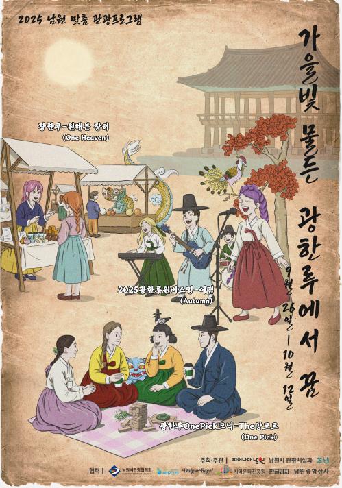 또한 『광한루원 버스킹_어떰(autumn)』, 『광한루-원해븐 장터』, 『2025 청춘마이크』, 『별멍달멍』 등 지역문화진흥원 및 남원 관광협의회와 연계한 다양한 공연과 체험 프로그램도 함께 진행돼, 풍성한 볼거리와 즐길 거리를 선사할 예정이다.
