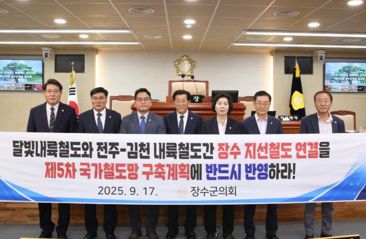 아울러 의회는 “장수역은 향후 2036 전주 하계올림픽 등 국제행사 유치를 위한 국가 교통 거점으로도 중요한 역할을 하게 될 것”이라며, 정부와 국회가 달빛내륙철도 장수읍 경유 확정과 영호남내륙철도 지선 신설을 제5차 국가철도망 구축계획에 반드시 반영해야 한다고 촉구했다.