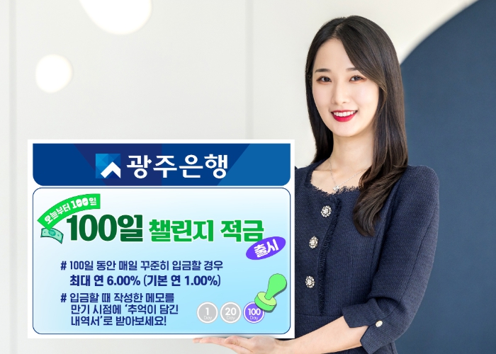 ![]() 광주은행, 100일의 꾸준함이 금리와 추억이 되는 '100일챌린지적금' 출시! |