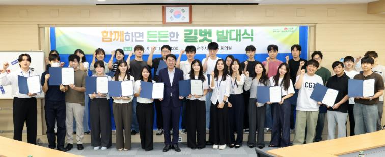 시는 17일 시청 4층 회의실에서 우범기 전주시장과 청년 공무원 50여 명이 참석한 가운데 ‘2025년 하반기 길벗 결연식’을 가졌다.