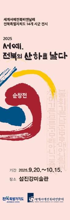 이번 전시는 ‘2025 서예, 전북의 산하를 날다’라는 주제로 전북특별자치도 14개 시·군에서 동시에 열리는 대규모 서예 행사로, 순창에서는 지역 서예의 정체성과 흐름을 드러내는 자리로 주목받고 있다.