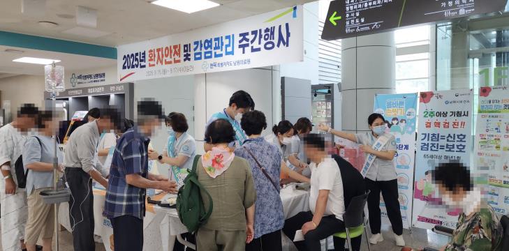 남원의료원의 환자, 보호자, 직원 등 355명을 대상으로 가을철 집중 발생하는 진드기 매개 감염병의 예방수칙과 2주 이상 기침 시 결핵 검진 안내 등을 홍보하고, 일상에서 실천할 수 있는 손 위생 상태를 직접 체험하며 감염병 관련 퀴즈를 푸는 등의 감염병 예방과 선제적 대응을 공감하는 시간이었다.