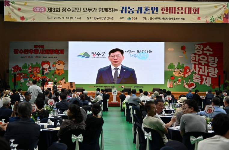 이번 행사는 제19회 장수한우랑사과랑축제 첫날에 맞춰 열렸으며, 귀농귀촌인을 비롯한 모든 군민이 함께 어울려 장수에서 살아가는 의미를 공유하고 소통하는 화합의 장으로 마련됐다.