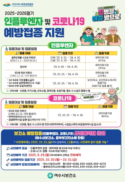 다만 취약계층 대상 독감 접종은 여수시 관내 보건소에서만 가능하다.