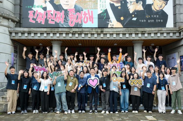 ![]() 지난 16일 순천시 신규공무원아카데미에 참여한 신규임용후보자들이 순천드라마촬영장 내 순양극장에서 기념 단체사진을 촬영하고 있다 |