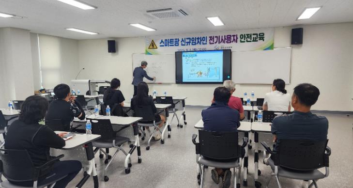전문 교육강사가 진행한 이번 교육의 주요 내용은 ▲스마트팜 전기설비의 구조 및 사용 방법 ▲전기 누전, 과부하, 감전 등의 사고 사례 소개 ▲비상 상황 시 대처 방법과 안전 수칙 ▲온실 관련 양액기, LED 조명, 제습기, 서보모터 등 주요 자동화 설비의 안전 사용법과 현장 사례 중심 설명으로 임대 농업인들의 이해도를 높였다.