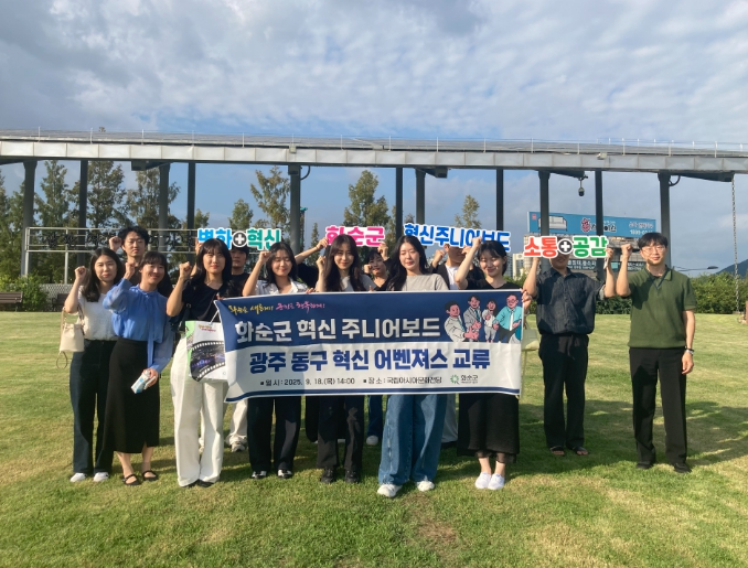![]() 화순군 혁신 주니어보드와 광주 동구 혁신 어벤져스 교류 행사 단체 기념사진. |