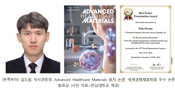 ![]() 김드림 석사과정생, Advanced Healthcare Materials 표지 논문, 세계생체재료학회 우수 논문 |