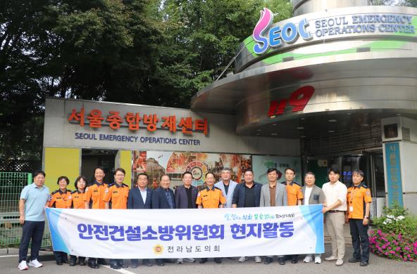 ![]() 전라남도의회 안전건설소방위원회가 9월 22일 서울종합방재센터를 방문해 AI 콜봇 운영 사례를 청취한 후 기념촬영을 하고 있다. |