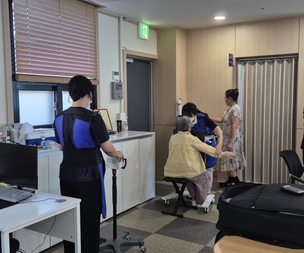 ![]() 65세 이상 어르신이 흉부 X선 검사를 받는 모습 |