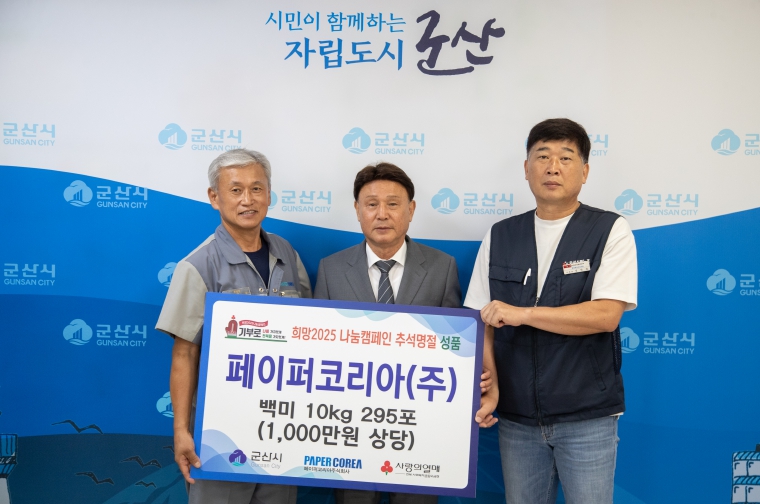 강임준 군산시장은 “매년 지역 이웃을 위해 귀한 정성을 보내주시는 페이퍼코리아(주)에 진심으로 감사드린다.”라며, “이번에 기탁해주신 백미는 도움이 꼭 필요한 세대에 소중히 전달하겠다.”라고 전했다.