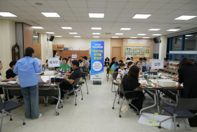 ![]() 곡성군 학무보와 주민들이 교육포럼에 참가하고 있는 모습 |