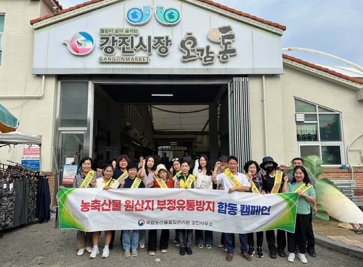 이날 캠페인에는 강진군 명예감시원 10명과 국립농산물품질관리원 전남지원 강진사무소 관계자 등 20여 명이 참여해 시장을 찾은 소비자와 상인들을 대상으로 원산지 표시의 중요성을 안내하고, 원산지 표시의 중요성에 대한 홍보와 현장 계도 활동을 펼쳤다.