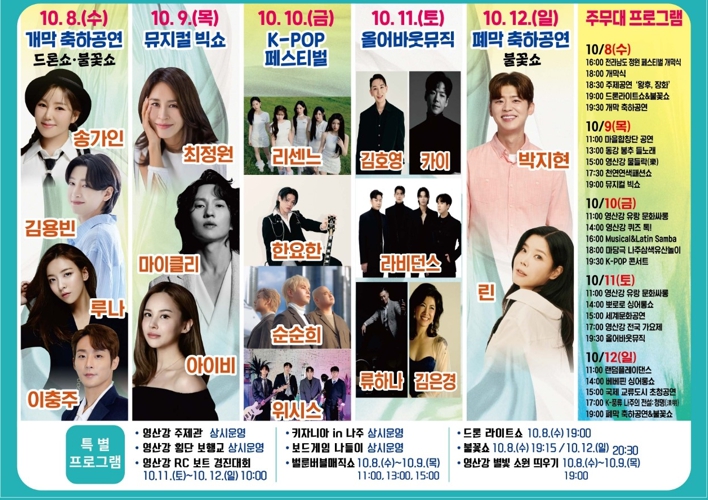 특히 개막식부터 폐막식까지 5일 동안 대한민국 최정상급 뮤지컬 배우, 트로트 스타, K-POP 아티스트 등이 대거 출연해 축제의 품격과 화려함을 더한다.
