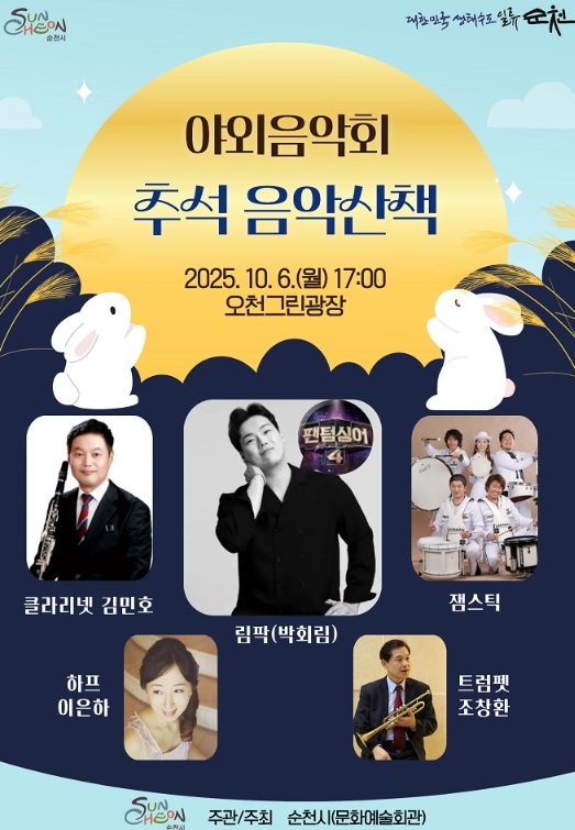 문화예술회관 관계자는 “한가위 저녁, 오천그린광장에서 펼쳐질 이번 음악회는 시민과 관광객이 함께 즐길 수 있는 열린 무대”라며 “가족과 함께 깊어가는 가을밤을 음악과 함께하시길 바란다”고 말했다.