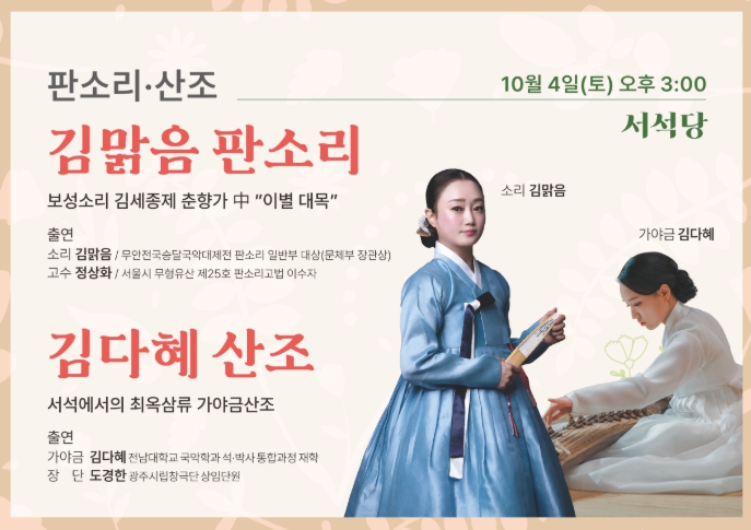 이어지는 두 번째 무대는 소리꾼 김맑음이 들려주는 '김세종제 춘향가'이다.