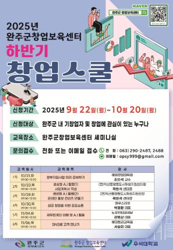 ![]() 완주군 창업보육센터, 창업스쿨 수강생 모집 |