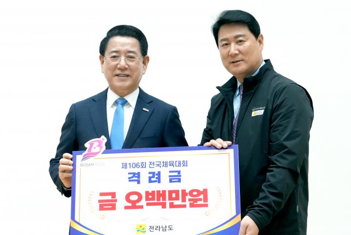Sports promotion donations were also presented by Gwangju Bank, NH Nonghyup Bank, the Jeonnam Chapter of the Korea Construction Association, and the Jeonnam Chapter of the Korea Specialty Contractors Association to encourage the athletes.