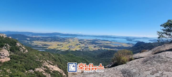 ![]() 대흥사 만일재에서 내려다 보이는 황금들녁과 다도해 / 사진제공=뉴스채널 |