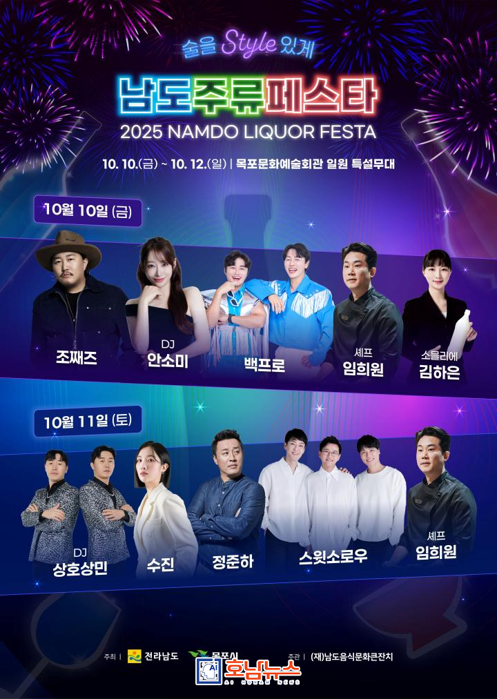 ![]() 2025남도주류페스타 포스터-출연진 / 사진제공=전라남도 |