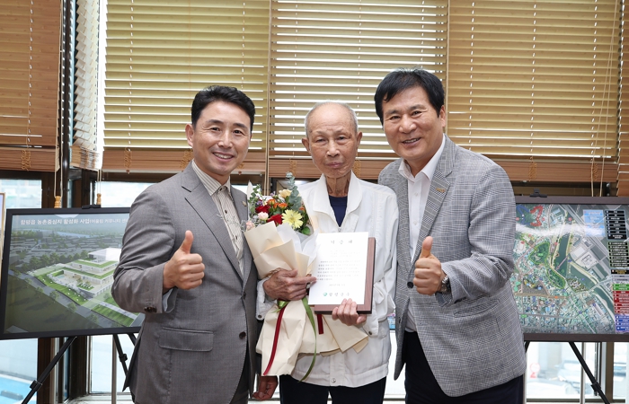 ![]() 왼쪽부터 이남오 함평군의회 의장, 한길종 씨, 이상익 함평군수 |