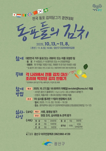 광산구는 타국에서도 잊지 않았던 조상들의 문화를 각자의 환경에 맞게 변형해 온 김치 문화를 경연 방식으로 소개하고 공유하자는 취지다.